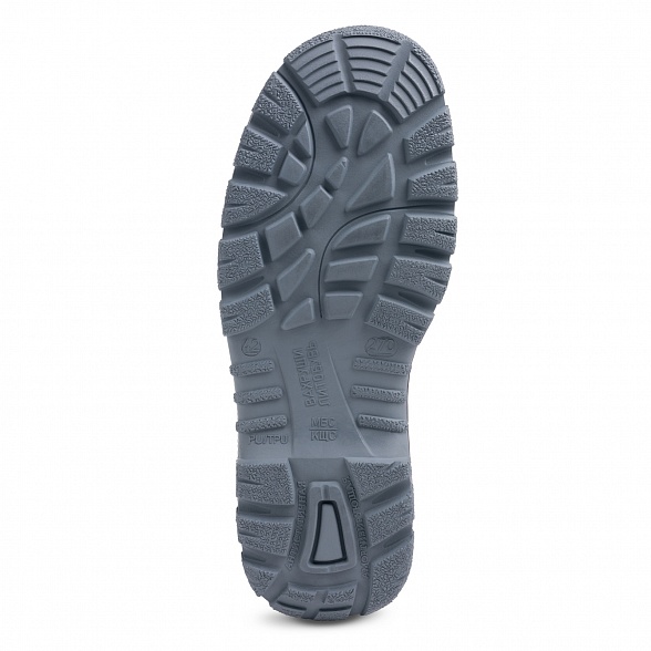Двухслойная полиуретановая подошва с накладками из термопластичного полиуретана (ПУ/ТПУ), устойчива к воздействию агрессивных сред — растворов кислот, щелочей с концентрацией до 20%, воздействию масла, нефти и нефтепродуктов. Специальное рифление на подошве препятствует скольжению.