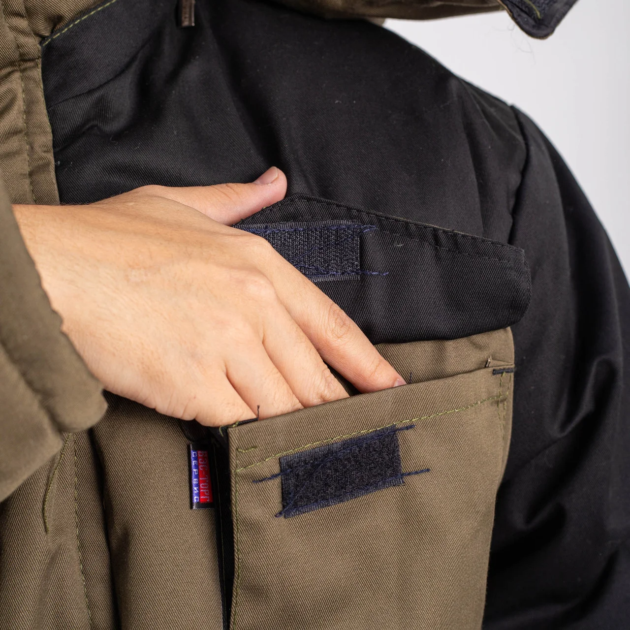 Имеет утепляющий слой (тинсулейт) . Снабжен функциональными элементами, такими как ветрозащитные клапаны, карманы. Разработан с учетом всех требований для работы в суровых климатических условиях.