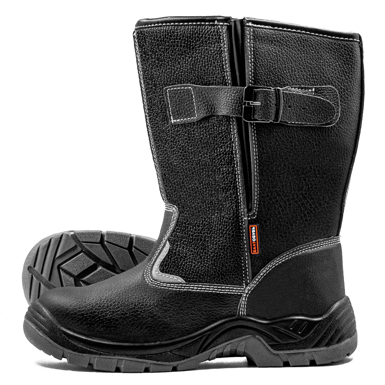 На двухслойной ПУ/ПУ (полиуретановой) подошве литьевого метода крепления. • Верх — кожа толщиной 1,8-2,0 мм с тиснением. • Высота сапога снаружи: 28 см.,внутри: 26 см. • подклад — Искусственный мех • подносок — металл • Размерный ряд 39-47.