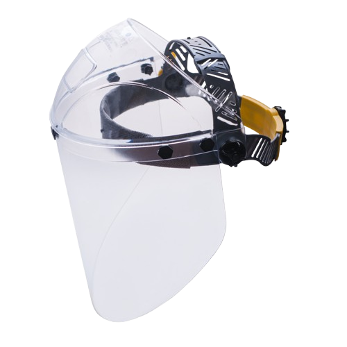 Увеличенный экран имеет скошенную книзу форму для увеличения эргономики изделия, дополнительные удобства при повороте и наклоне головы; удлиненный экран для дополнительной надежной защиты шеи и верхней части груди от механических повреждений и высоких температур; Экран покрыт истиранием и царапинами.