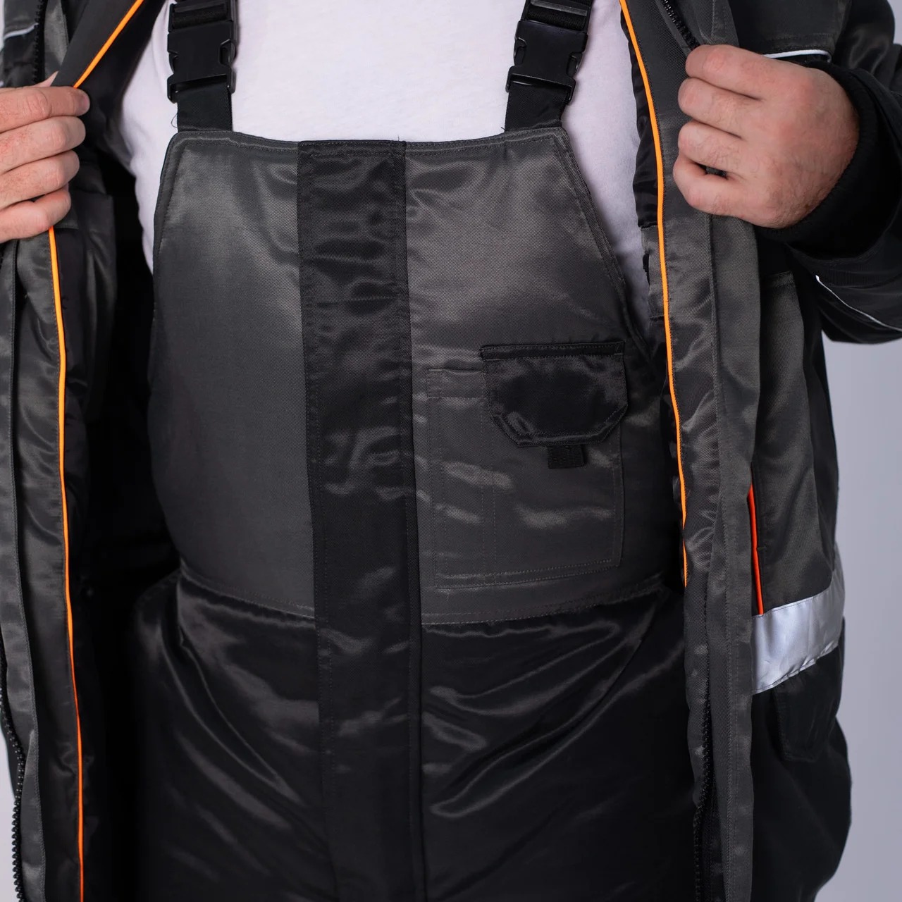 Зимний костюм «Grey Castle» (куртка + полукомбинезон) — надежная спецодежда для работы в суровых условиях и при высокой физической нагрузке.